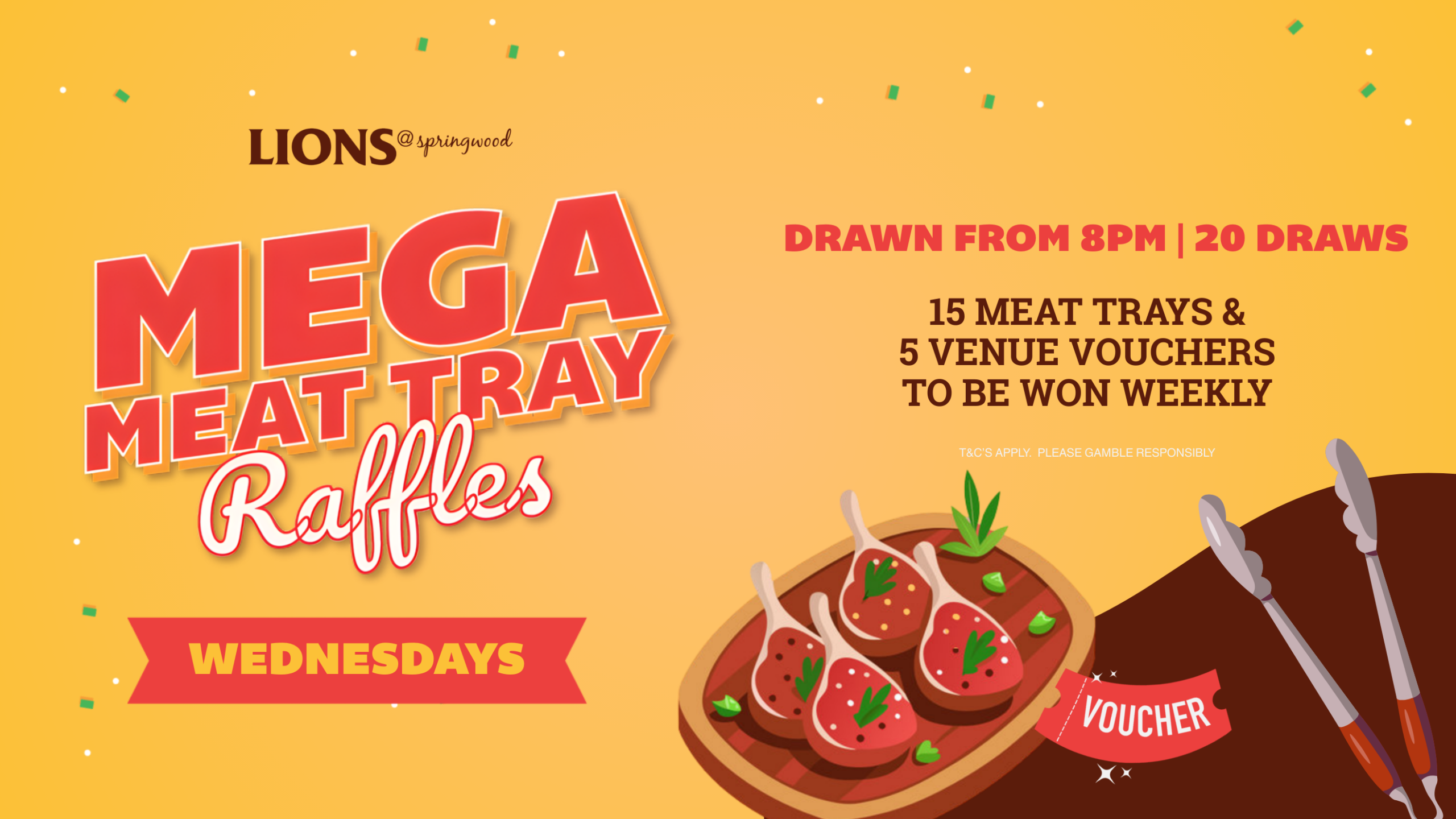 With 20 draws from 8pm and 15 meat trays plus 5 venue vouchers to be won weekly, you’ll want to grab your tickets early at reception. T&Cs Apply.