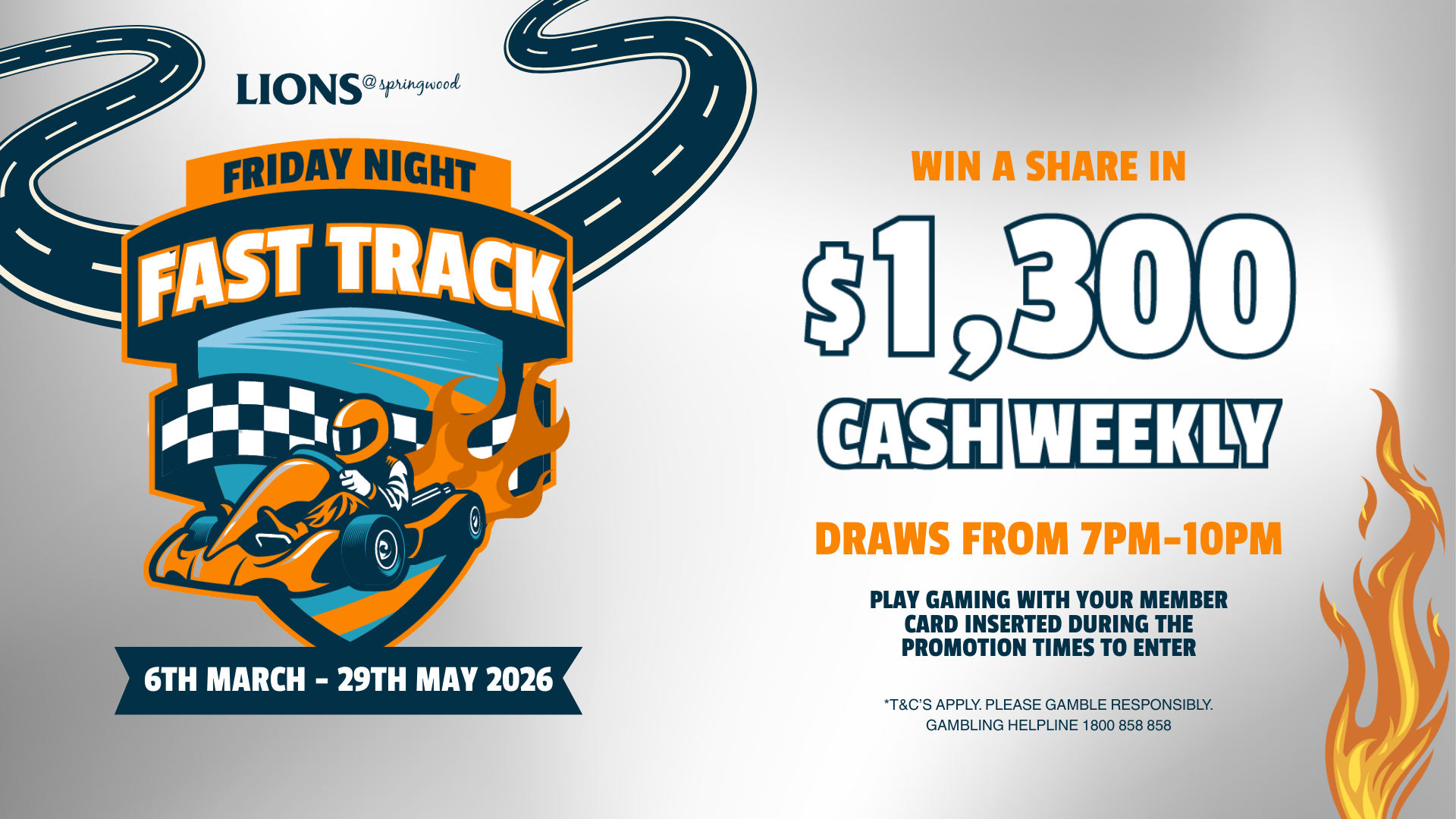 Fridays | 6 March – 29 May 2026 Friday Night Fast Track Promotion. Win a share in $1,300 CASH weekly! Draws every Friday from 7pm–10pm. Play gaming with your member card... Read more »